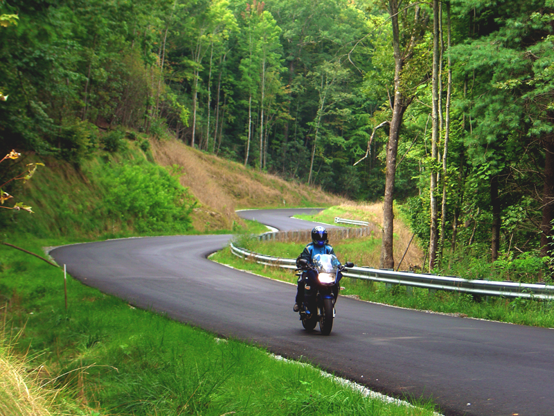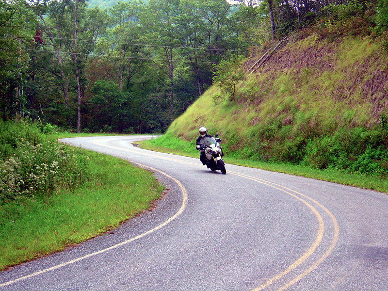 Ride Summary : DISCLAIMER - this ride is comprised of some of the trickiest and most technical roads you'll ever experience. If the Blue Ridge Parkway has been putting you to sleep, this ride will wake you up - or else. It throws everything at you and lures you into curves and switchbacks that will have experts grinning and a novice clenching his teeth. You've been warned!