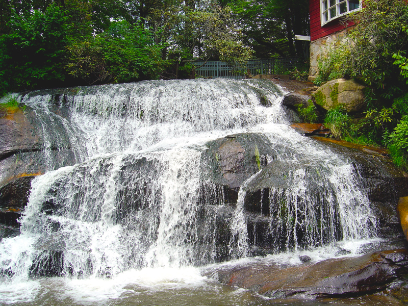 NC 215 Bonus - Start watching for the Living Waters Retreat Center on your left 5.5 miles from US 64. Just BEFORE you reach it, there is a 45 mph speed limit sign on the left. Park near this sign. A short path leads to 2 roadside waterfalls. The slippery trail leads to 3 more close by.