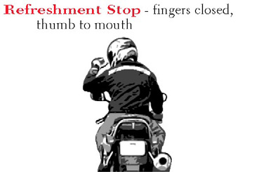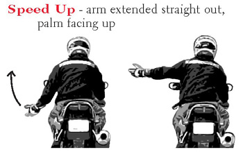Hold a riders’ meeting. Discuss things like the route, rest and fuel stops, and hand signals (see diagrams on next page). Assign a lead and sweep (tail) rider. Both should be experienced riders who are well-versed in group riding procedures. The leader should assess everyone’s riding skills and the group’s riding style.