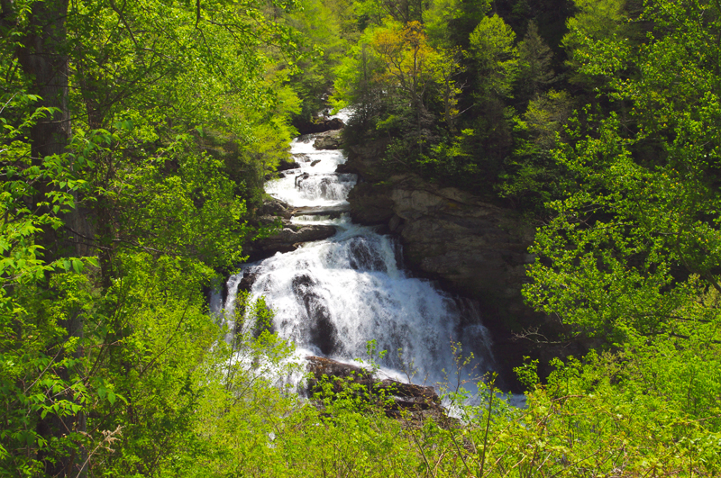 Follow the signs in Franklin to make the right turn onto NC 28 south and leave town behind. Passing under US 441, follow US 64 / NC 28 into the Cullasaja River Gorge. The road twists and turns through the spectacular scenery of this beautiful area. There are four superb roadside waterfalls as you wind your way into Highlands with its shops and cafes.
