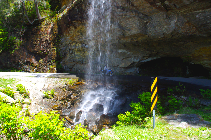 Ride Summary : This loop ride near the south end of the Blue Ridge Parkway takes you to some of the best of the tourist sites that draw so many to the Smoky Mountains-waterfalls, rugged mountain scenes, stunning long range views, and whitewater rivers, but you'll be sharing the ride with all those other visitors. Despite the traffic, this route should be at the top of your must-do list. You'll always remember it.